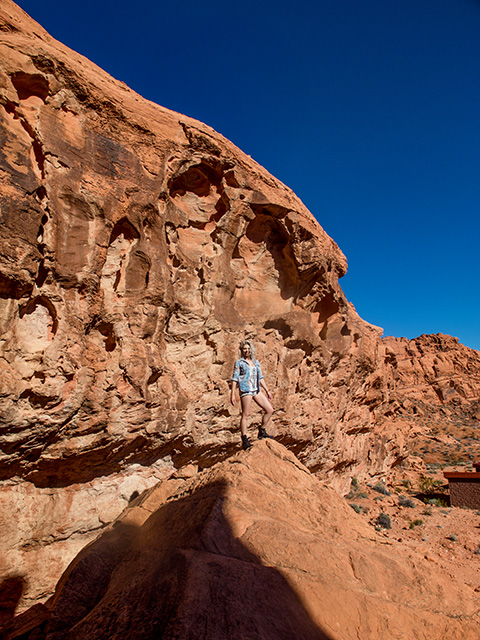 rooftops of two cabins. Then, at another stop, she climbed on a road